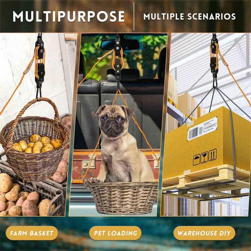 The Funhorun Dual Pulley Deer Hoist delivers heavy-duty performance and effortless lifting for hunters. With a 700LB load capacity and 4:1 lift ratio, it allows one person to raise large game like deer or elk with ease. The reinforced aluminum pulleys ensure smooth, durable operation, while the locking hook system provides secure attachment during use.