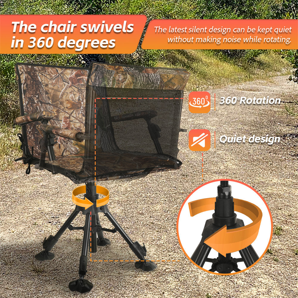 Ranger360 Swivel Hunting Chair is engineered to deliver silent movement, all-day comfort, and maximum adaptability in the field. Featuring ultra-quiet 360° swivel rotation with noise-damping steel bearings, it allows you to track targets smoothly without alerting game. The reinforced base eliminates wobble, ensuring steady aim and stability even during fast movements.