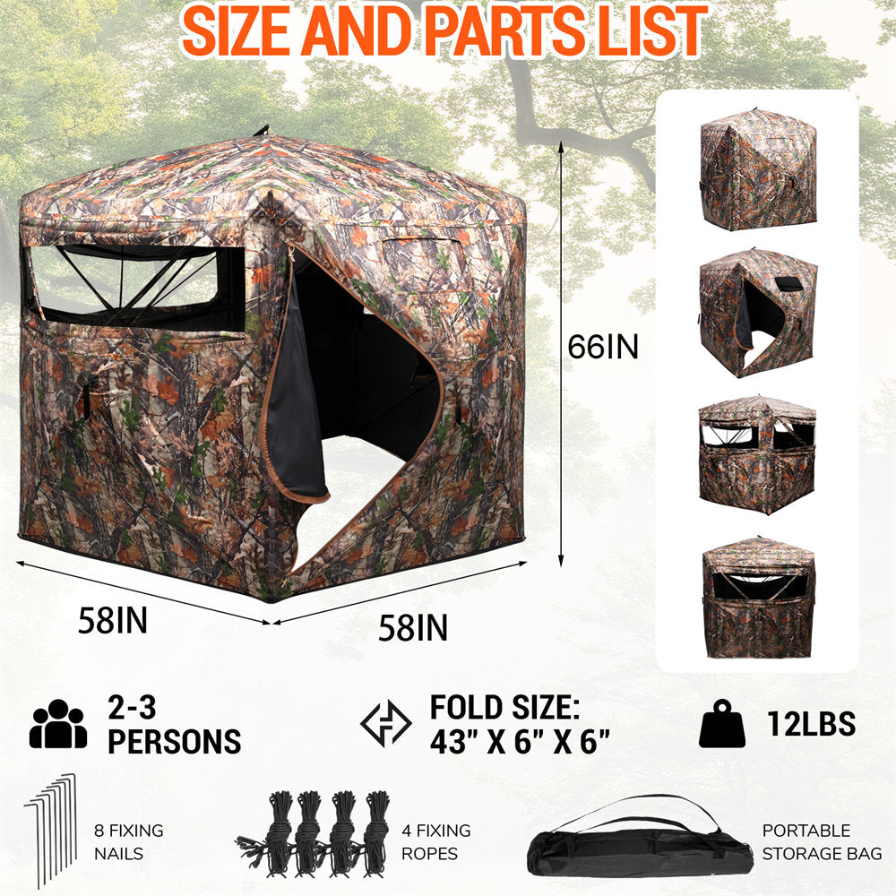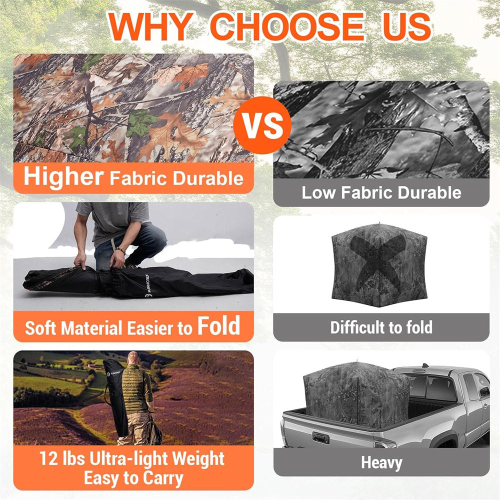 Crafted from lighter, softer fabric, the Striker Base combines durability with quieter performance, reducing noise while ensuring all-weather protection. Its unique camouflage pattern, tailored for deer and turkey habitats, blends seamlessly into natural surroundings. Silent-slide adjustable windows on multiple sides make it easy to adapt shooting angles without alerting prey.