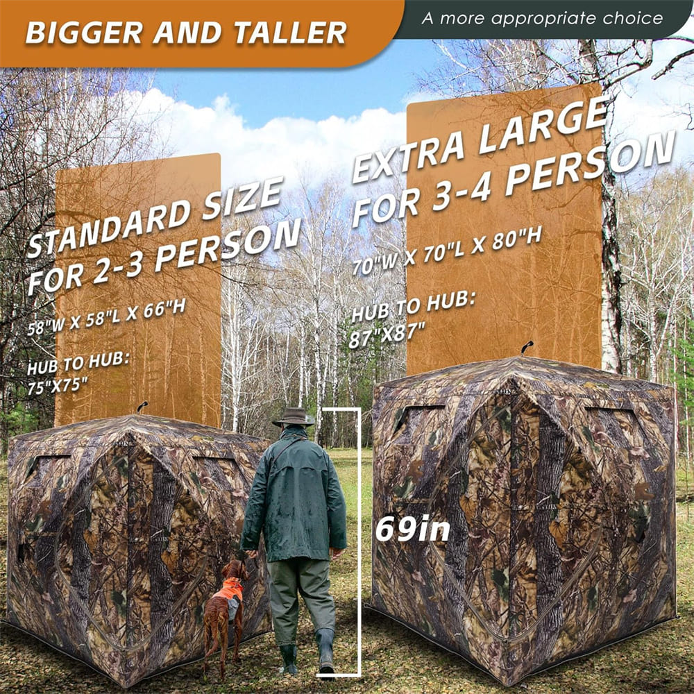 Striker360 Diamond Camo Ground Blind is designed for hunters who need more room to move, enter, and exit with ease. Featuring four one-way see-through panels, it delivers a true 360° panoramic view while keeping you fully concealed in the field.
