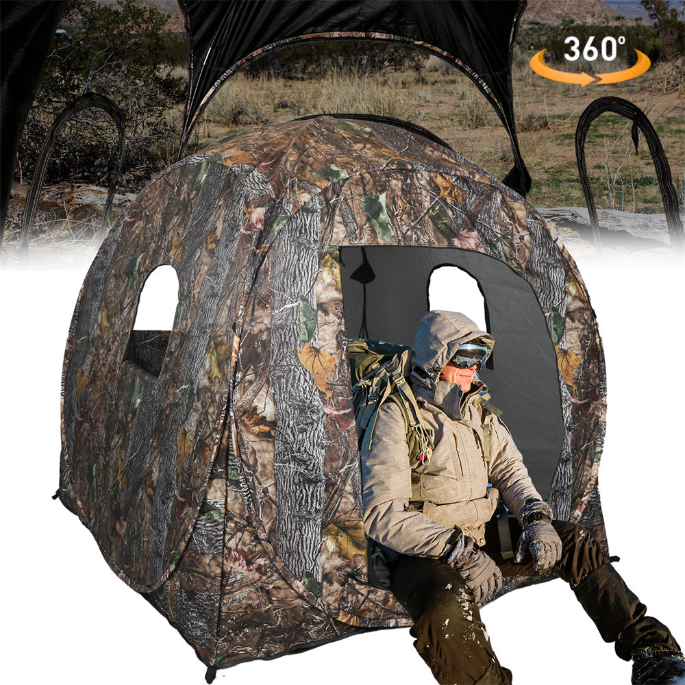 With four one-way see-through panels, the blind provides a full 360° panoramic view, allowing hunters to observe their surroundings while staying completely hidden. A removable waterproof floor mat adds comfort and protection, keeping you dry whether sitting or lying down. Built with solid fiber rods and spring steel, reinforced by 8 ground stakes and 4 ropes, it stands strong against wind, rain, and snow.